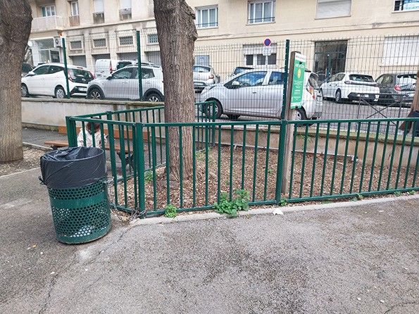 Installation de corbeilles de tri au jardin Jules Moulet (6e) et au square Jean Giono (6e), favorisant des pratiques plus respectueuses de l’environnement