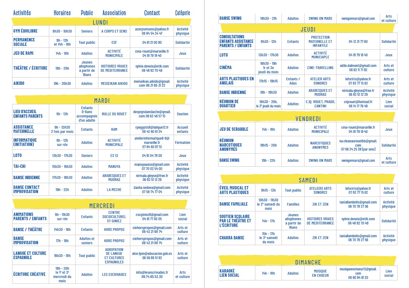 Centres aérés : Maternelle +élémentaire Pointe rouge Gymnase Grotte Rolland
