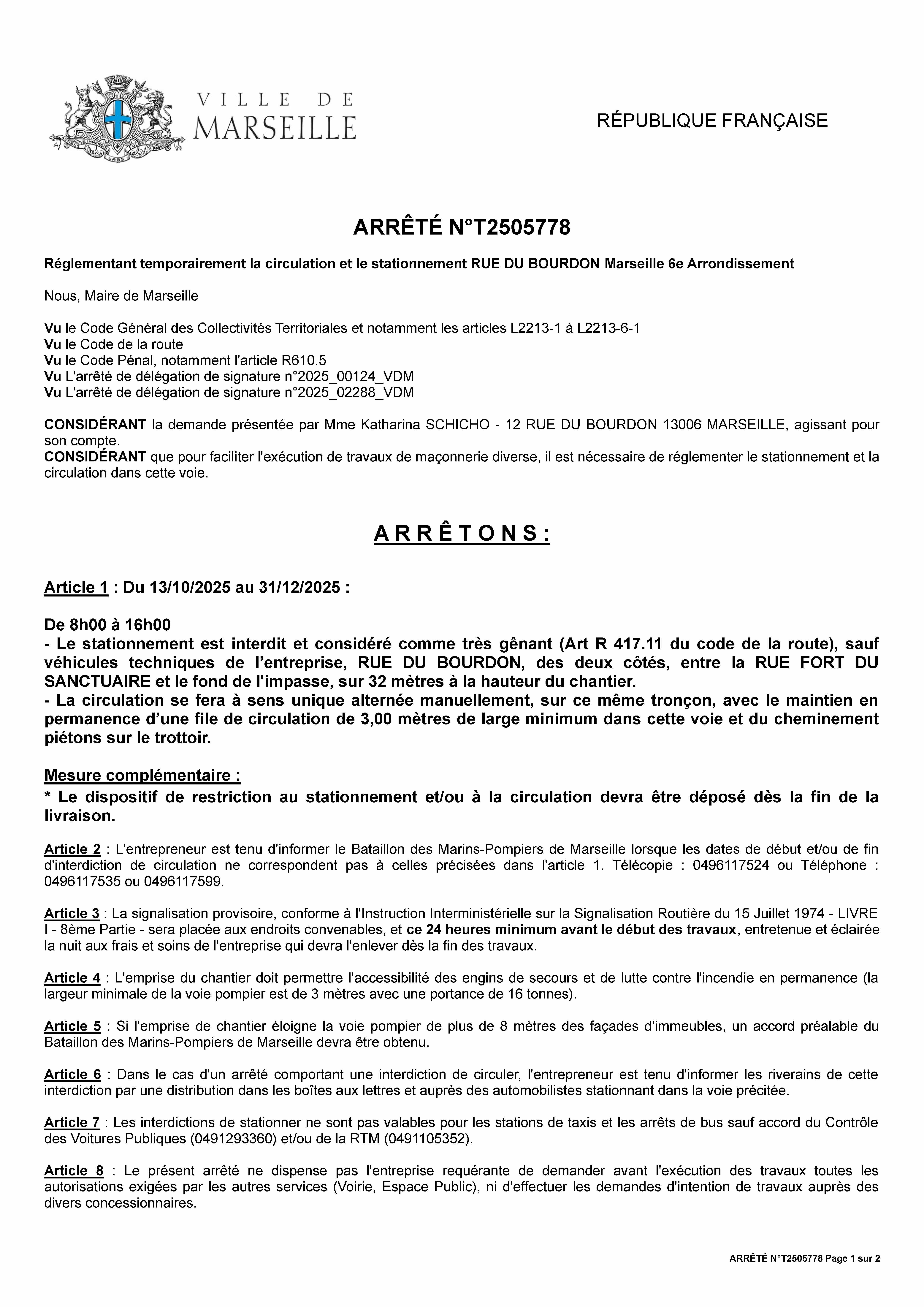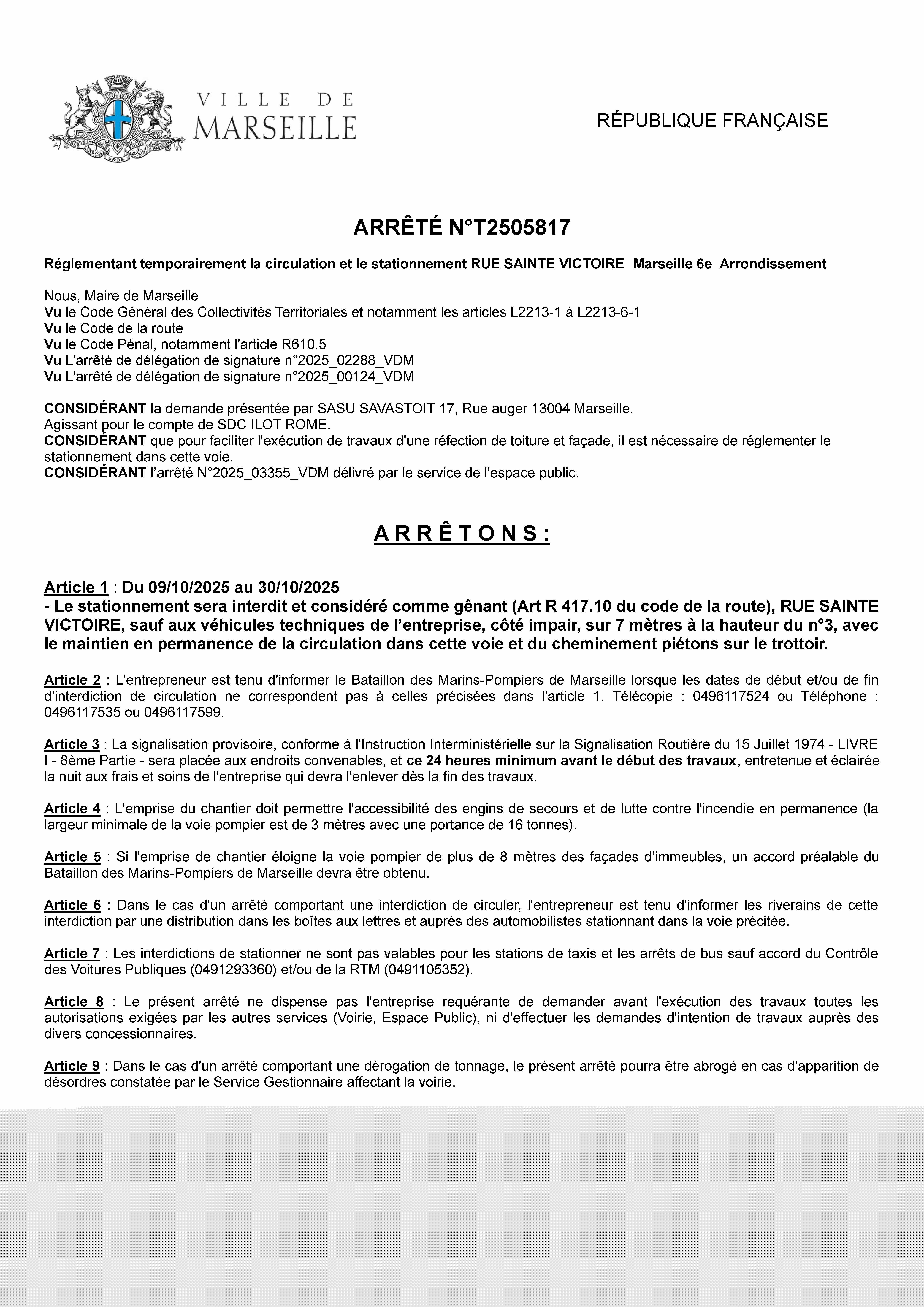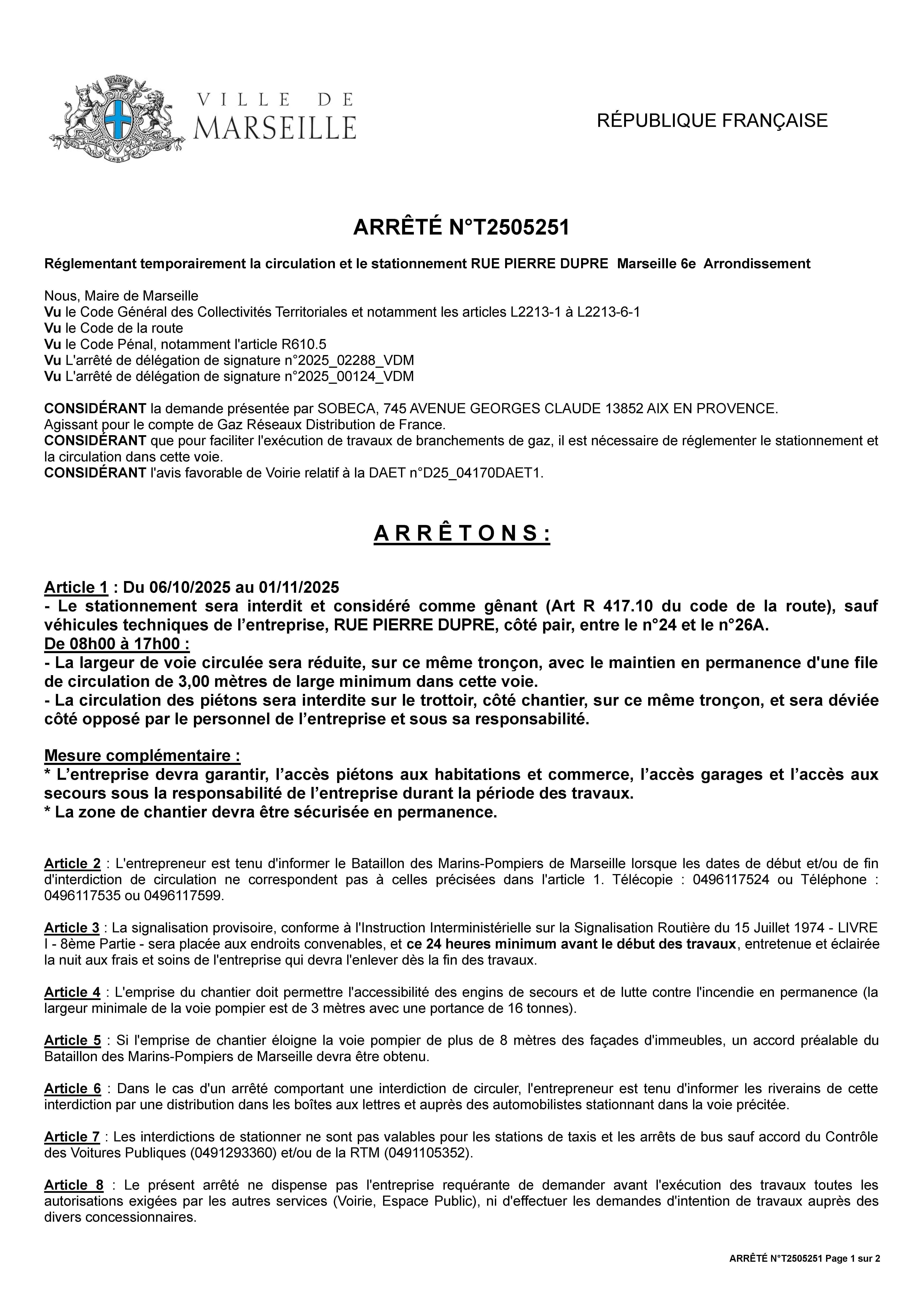 Modification de circulation - Stationement dans le 6&8