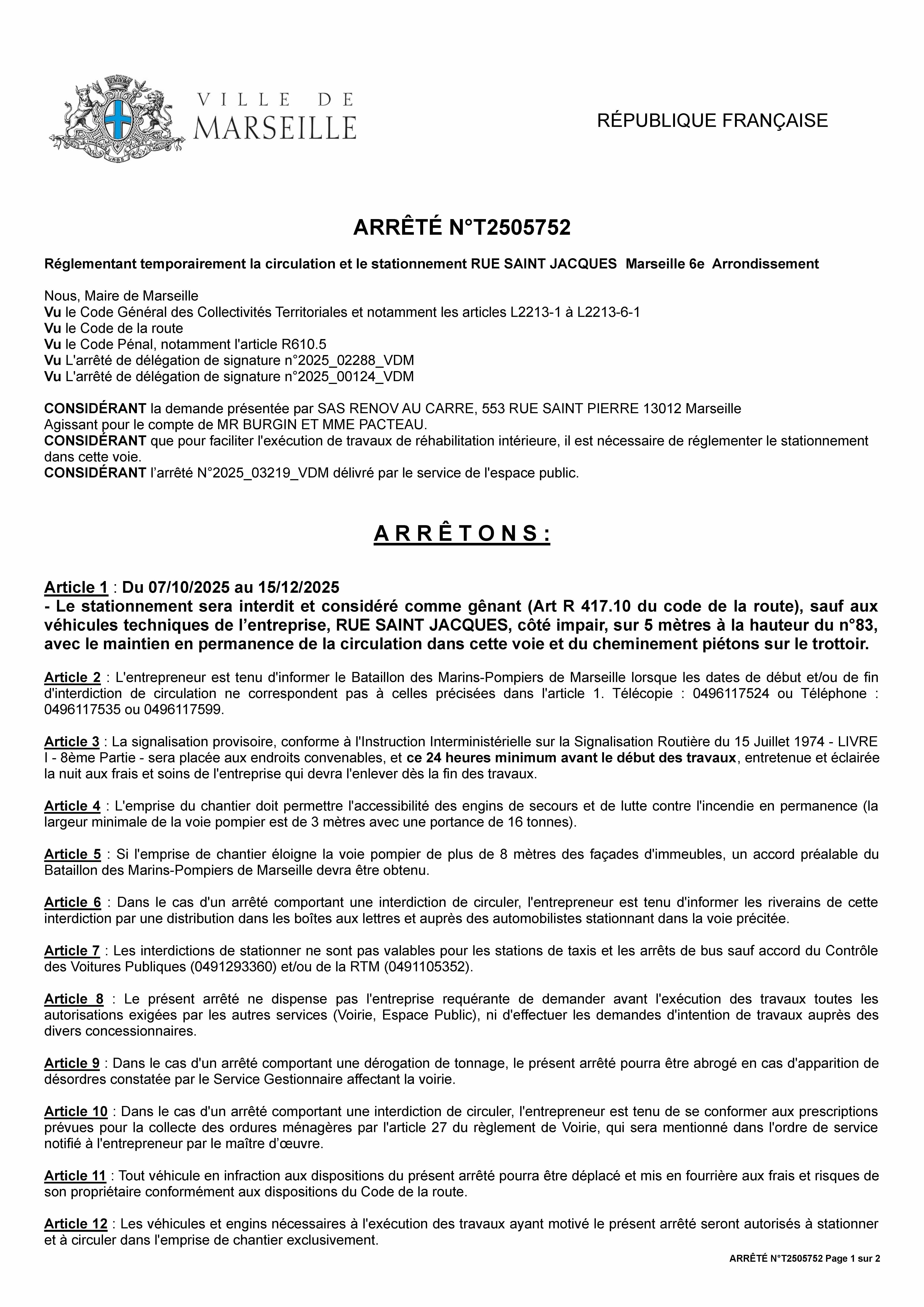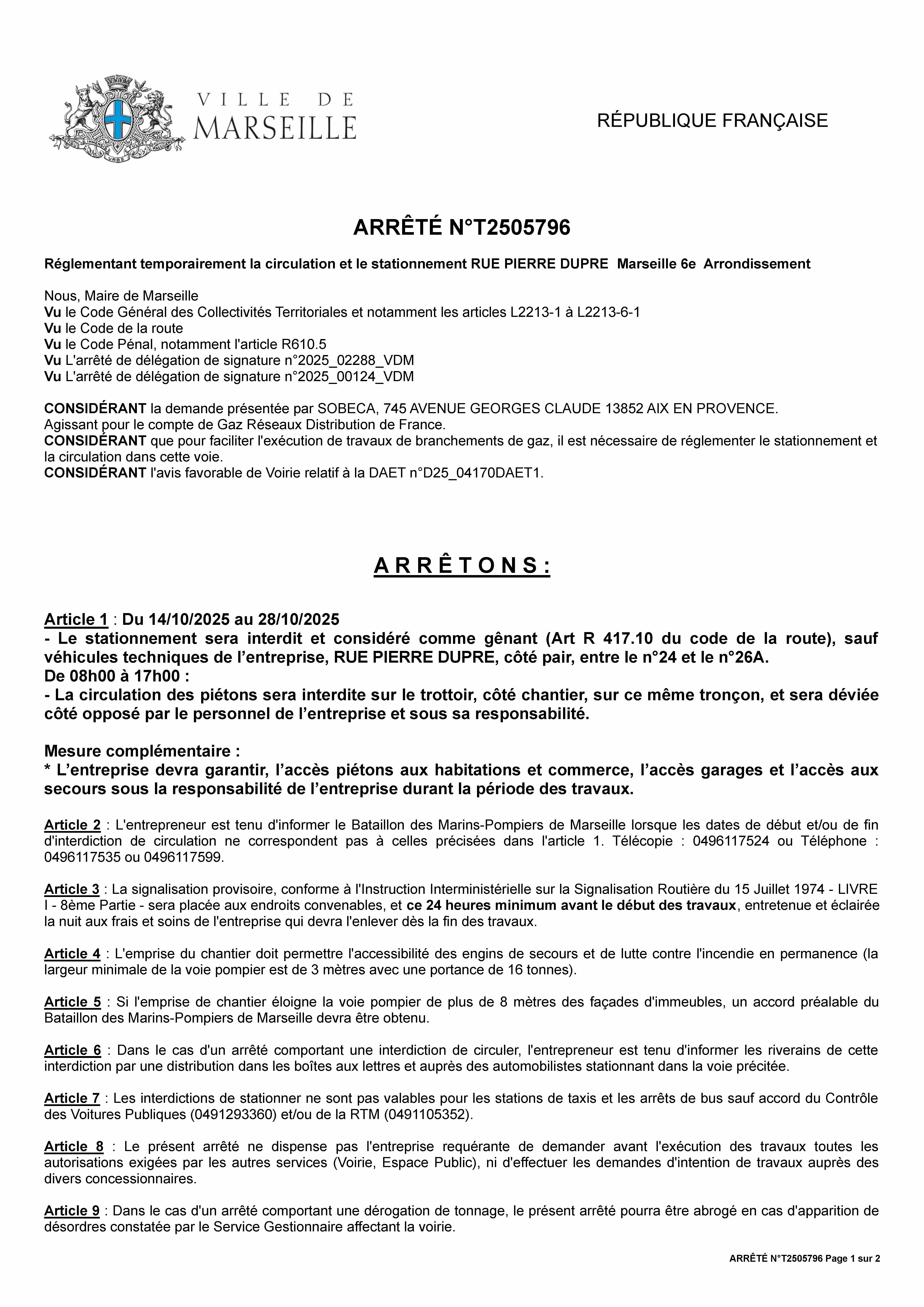 - Circulation des véhicules siglés « SENTINELLE » en intervention,- Du 26 janvier 2025 au 16 janvier 2027
