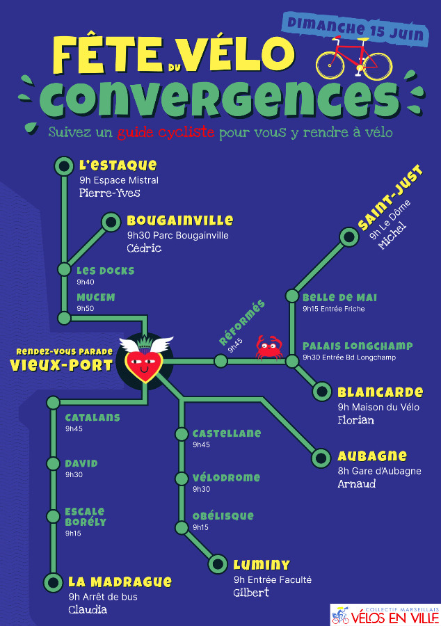 9h – 10h : Départs à vélo depuis différents quartiers de Marseille pour rejoindre la Grande Parade